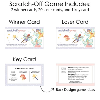 Fairy Garden Scratch-Off Cards INCLUDES 22 Birthday Party game cards: 20 “loser” cards and 2 “winner” cards. FUN PARTY GAME: Let’s Be Fairies scratch-off cards will be enjoyed by Birthday Party guests of all ages. Each game card measures 2.75″ tall x 4.75″ wide. Winner and loser game cards are packaged separately so it is easy to pre-select the game winners if you choose. 3 WAYS TO PLAY: Simple – Greet guests as they arrive and hand them a scratch-off card. Quick – Display one scratch-off card at each place setting and have guests play before eating. Favorite – Give scratch-off cards out as mini prizes during other party games. The winning scratch off card(s) gets a grand prize. HIGH-QUALITY PARTY SUPPLIES: Enchanted Garden Scratch-Off Cards are professionally printed on heavy-duty cardstock paper with a photo-like shine. They are individually inspected and carefully packaged by hand, with winner cards and loser cards clearly marked. This fun Birthday Party game will arrive ready to use at your party. MADE IN THE USA: Let’s Be Fairies Birthday Party Game Scratch Off Cards are designed and manufactured at our Wisconsin facility using materials that are Made in the USA.