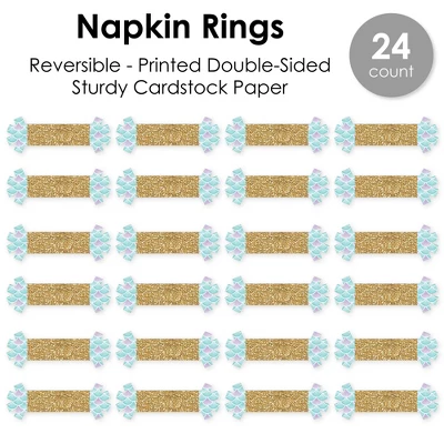 Let’s Be Mermaids Napkin Rings includes 24 paper napkin rings with an interlocking tassel-shaped end. Wrap your napkins and cutlery in these paper rings for an elevated look at your Baby Shower or Birthday Party. Tableware Accent: Let’s Be Mermaids rings will add a festive flare to your napkins, table linens, and cutlery. From large banquets to small gatherings with loved ones, these napkin rings have that extra charm for a next-level table setup. Easy DIY: Under The Sea Themed napkin holders are a no-fuss solution for your table setting decor and require quick and easy assembly. Start by forming the napkin ring into a circle and attach the tassels by interlocking the slits. Slide the tassels together until the art matches up and insert your napkin and dinnerware. High-Quality Supply: Let’s Be Mermaids Napkin Rings are reversible and professionally printed double-sided on sturdy cardstock paper with a photo-like shine. Each paper rings measure 2.25” wide x 2.25” tall when assembled. Napkin Rings arrive flat and will require some easy assembly. Made In The USA: Let’s Be Mermaids Napkin Rings are designed and manufactured at our Wisconsin facility using materials that are Made in the USA. Let’s Be Mermaids Napkin Rings uses a No-Mess Glitter Print: Our Napkin Rings are designed with a printed image of glitter, eliminating glitter flake while maximizing bling effect!