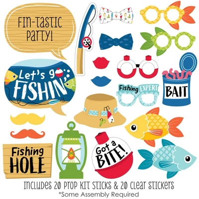 20-Piece Baby Shower or Birthday Party Photo Booth Props Kit INCLUDES 20 Let’s Go Fishing photo booth props, 20 sticks and stickers for assembly. EASY ASSEMBLY: Simply attach the printed DIY photo booth props to the sticks with included reinforcing stickers. PERFECT FOR ANY CROWD! Photo booth props are fun baby shower or birthday party supplies for adults and kids – everyone will love the funny faces on these Let’s Go Fishing baby shower or birthday party photo booth props. Take entertaining and shareable party photos of your friends and family while making memories with these funny photo booth props! FISHERMAN PARTY DECORATIONS: There are many fun ways to use these cute photo booth props! Use as intended at home, school or work and take party photos to share; add them to vases and floral arrangements as a fun fishing centerpiece; or accent your fish candy buffet by displaying them in apothecary candy jars! HIGH-QUALITY PARTY SUPPLIES: Let’s Go Fishing baby shower or birthday photo booth props are professionally printed on thick cardstock paper. They will arrive cut out and ready to assemble with the included sticks and stickers. MADE IN THE USA: Let’s Go Fishing – Baby Shower or Birthday Party Photo Booth Props Kit is designed and manufactured at our Wisconsin facility using materials that are Made in America.