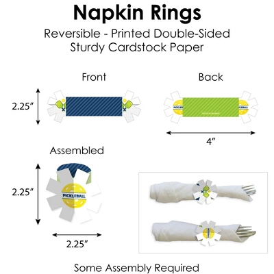 - Napkin Rings: Includes 8 reversible DIY paper rings that measure 2.25″ wide by 2.25″ tall when assembled. Design Reads: “Pickleball”