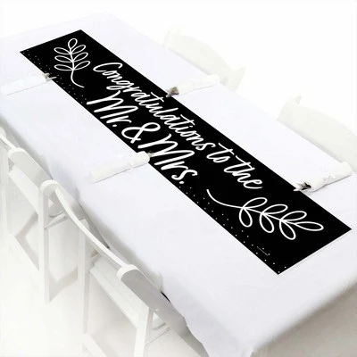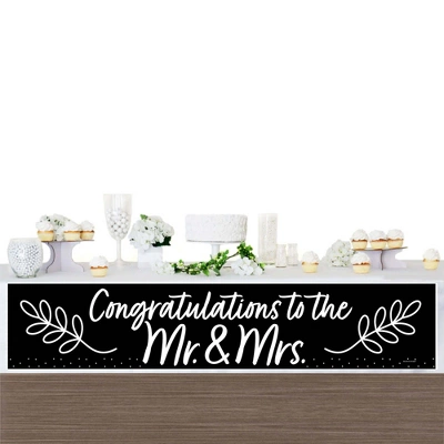 Mr. and Mrs. Black and White Banner is an impressive wedding or bridal shower decoration for your black and white party theme. SIZE: Mr. and Mrs. Black and White wedding or bridal shower party banner measures 1 foot by 5 feet. WEDDING OR BRIDAL SHOWER DECORATIONS: A Mr. and Mrs. Black and White Wedding or Bridal Shower Party Banner is an easy way to decorate for your party and bring your black and white party theme to life. Hang at the entrance of your black and white party, over the food table or candy buffet, at the gift table or behind the head table. Mr. and Mrs. Black and White banners are also great when displayed outdoors to welcome all your wedding or bridal shower party guests as they arrive. PREMIUM BLACK AND WHITE PARTY SUPPLIES: Mr. and Mrs. Black and White Banner is professionally printed on premium-grade satin paper with a photo-like shine. Each banner is individually inspected then carefully packaged by hand and rolled into a protective sleeve. All Mr. and Mrs. Black and White wedding or bridal shower party banners INCLUDE non-marking wall mounts for easy display. MADE IN THE USA: Mr. and Mrs. Black and White – Wedding or Bridal Shower Decorations Party Banner is designed and manufactured at our Wisconsin facility using materials that are Made in the USA.