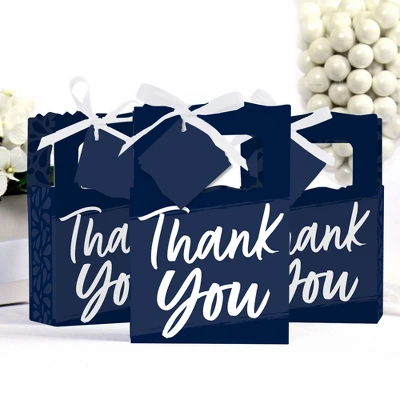 Navy Blue Elegantly Simple Favor Boxes INCLUDES 12 Royal Blue party favor Boxes, 12 gift tags, and coordinating satin ribbon. Classic favor boxes are a party must-have. Royal Blue theme party supplies are great for a wide variety of events. Navy Blue Elegantly Simple Party Favor Boxes SIZE 4.75 inches wide x 4.75 inches high x 2.25 inches deep (fillable inside space) with a total height of 7 inches, including the handle. The coordinating gift tags, and ribbon makes these 12 Royal Blue party favor boxes a complete treat box party kit that everyone will love. ROYAL BLUE PARTY SUPPLIES: These favor boxes will hold a variety of treats, prizes and party favors for your guests. Fill them with baked goodies, party trinkets or thank you gifts for adorable Navy Blue Elegantly Simple party favors! PREMIUM PARTY FAVOR BOXES: Navy Blue Elegantly Simple party favor boxes are professionally printed on heavy-duty cardstock paper with a photo-like shine. They are hand-folded and individually inspected, then carefully packaged. Favor boxes will arrive flat, partially assembled. Finishing assembly is required but it is easy. Once assembled, add the Navy Blue Elegantly Simple gift tag with the included ribbon for perfect party favors! MADE IN AMERICA: Navy Blue Elegantly Simple Baby or Bridal Shower, Anniversary, Retirement, or Birthday Party Favor Boxes are designed and manufactured at our Wisconsin facility.