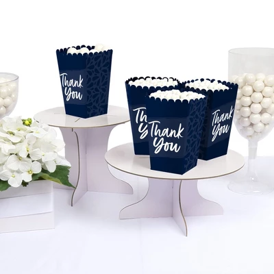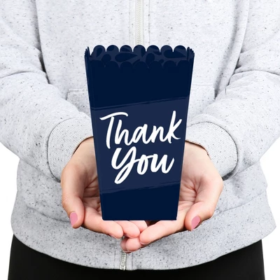 Navy Blue Elegantly Simple Favor Popcorn Treat Boxes INCLUDES 12 Navy Blue Elegantly Party favor boxes. These treat boxes are perfect for any event. The Royal Blue theme is great for a wide variety of Celebrations! Navy Blue Elegantly Simple party favor popcorn treat boxes SIZE 5.75 inches tall x 3.5 inches square at the top. The unique design and large size makes these 12 Royal Blue popcorn boxes a must-have for any Baby or Bridal Shower, Anniversary, Retirement, or Birthday Party. POPCORN BOX PARTY SUPPLIES: Navy Blue Elegantly Simple popcorn boxes will hold a variety of party food. Fill them with sweet treats or salty snacks. Popcorn, caramel corn, candies, and other goodies will look amazing on your candy buffet with these Party favor boxes. PREMIUM PARTY FAVOR BOXES: Navy Blue Elegantly Simple party treat boxes are professionally printed on heavy-duty cardstock paper with a photo-like shine. They are hand-folded and individually inspected, then carefully packaged. Popcorn boxes will arrive flat. Easy assembly is required. MADE IN AMERICA: Navy Blue Elegantly Simple Baby or Bridal Shower, Anniversary, Retirement, or Birthday Party Favor Popcorn Treat Boxes are designed and manufactured at our Wisconsin facility using materials that are Made in America.