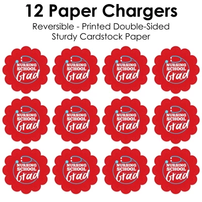Nurse Graduation Paper Chargers INCLUDES set of 12 reversible round table decorations. Create an exciting look at your Medical Nursing Graduation Party when you use paper chargers to elevate your table setting and accent your dinnerware. Tablescape Accent: Nurse Graduation chargers will add a festive flare to your tablescape. Whether it’s a large feast gathering or a close-knit gathering with the family, paper chargers will add a splash of color and are a great alternative to paper doilies. Easy Decor: Dress up your table with layers! Add a plate to the center of paper chargers. Red Med School Themed paper charger is an easy solution for your table setting decor and perfect for complementing your tableware. The scallop border can be flared up for an elevated look and the backside can be used for an alternate look. High-Quality Supply: Nurse Graduation Paper Chargers are professionally printed double-sided on sturdy cardstock paper with a photo-like shine. Paper chargers measure 11.25″ in diameter and are the perfect final touch to complete your Medical Nursing Graduation Party. Made In The USA: Nurse Graduation Paper Chargers are designed and manufactured at our Wisconsin facility using materials that are Made in the USA.