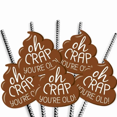 Oh Crap, You’re Old Straw Decor INCLUDES 24 dung paper cut outs, 24 coordinating paper straws & clear stickers for easy assembly. Poop DIY party supplies are perfect for a crappy birthday party. Oh Crap, You’re Old Straw Decor party kit SIZE 24 poops 2.5″ wide x 2.5″ tall; and 24 chevron striped paper straws 7.75″ tall. EASY PARTY DECORATIONS: Oh Crap, You’re Old straw decor will add a touch of style to your crappy birthday party tables. Brown dung straw decor will also look great at your beverage bar. Use these adorable poop party accessories as straws or swizzle sticks. The paper straws can also be cut in half and used as cupcake picks once the shaped cut out is attached. PREMIUM PARTY SUPPLIES: Oh Crap, You’re Old paper cut out straw decorations are professionally printed on heavy-duty cardstock paper with a photo-like shine. They are individually inspected and carefully packaged by hand, along with coordinating paper straws. Oh Crap, You’re Old Straw Decor will require some easy assembly. Simply adhere the shaped cut outs to the straws using the included clear stickers. Get creative with your DIY crappy birthday party decoration ideas! Please Note: Mason Jars shown for display purposes and are not included.