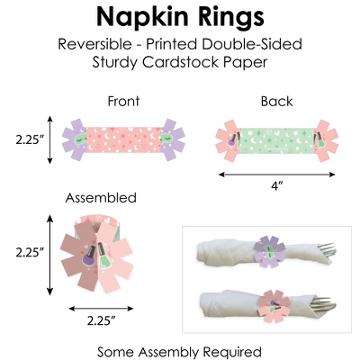 - Napkin Rings: Includes 8 reversible DIY paper rings that measure 2.25” wide by 2.25” tall when assembled.