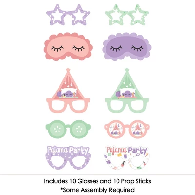 10-Piece Pajama Slumber Party Photo Booth Props INCLUDE 10 fun Girl Sleepover Birthday Party photo booth props and Sticks. EASY ASSEMBLY: Simply attach the printed pillow fight & blanket fort themed photo booth props to the Sticks with the included reinforcing stickers. PERFECT FOR ANY CROWD! Glasses and Masks photo booth props are fun Pajama Slumber Party supplies for adults and kids. Take entertaining and shareable party photos of your friends and family while making memories with these fun photo booth props! Everyone will love sharing their Self Care & Makeover pics with these Glasses and Masks photo booth props. PINK PJ PARTY SUPPLIES: There are many fun ways to use these festive Pajama Slumber Party photo booth props! Use as intended at home, school, or work and take festive photos to share. Your friends, family, and co-workers will enjoy taking their own Pajama Slumber Party photos. HIGH-QUALITY PARTY SUPPLIES: Pajama Slumber Party photo booth props are professionally printed on thick cardstock paper. They will arrive cut out and ready to assemble with the included Sticks and reinforcing stickers. MADE IN THE USA: Pajama Slumber Party – Girls Sleepover or Birthday Party Photo Booth Props Kit is designed and manufactured at our Wisconsin facility using materials that are Made in the USA.
