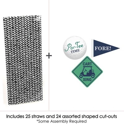 Par-Tee Time – Golf Straw Decor INCLUDES 24 sports paper cut outs, 24 coordinating paper straws & clear stickers for easy assembly. Golf DIY party supplies are perfect for a baby shower, birthday or retirement party. Par-Tee Time – Golf Straw Decor party kit SIZE 8 cart signs 3.25″ wide x 3.25″ tall; 8 circles 2.5″ wide x 2.5″ tall; 8 flags 3″ wide x 2″ tall; and 24 chevron striped paper straws 7.75″ tall. EASY PARTY DECORATIONS: Par-Tee Time – Golf straw decor will add a touch of style to your baby shower, birthday or retirement party tables. Golf cart straw decor will also look great at your beverage bar. Use these adorable golf party accessories as straws or swizzle sticks. The paper straws can also be cut in half and used as cupcake picks once the shaped cut out is attached. PREMIUM PARTY SUPPLIES: Par-Tee Time – Golf paper cut out straw decorations are professionally printed on heavy-duty cardstock paper with a photo-like shine. They are individually inspected and carefully packaged by hand, along with coordinating paper straws. Par-Tee Time – Golf Straw Decor will require some easy assembly. Simply adhere the shaped cut outs to the straws using the included clear stickers. Get creative with your DIY baby shower, birthday or retirement party decoration ideas! Please Note: Mason Jars shown for display purposes and are not included.
