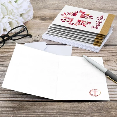 Pink Elegant Cross Thank You Note Card Set INCLUDES 8 girl religious party thank yous and premium white envelopes. Pink Elegant Cross thank you notes are perfect for any event. The cross theme is great for a baptism, Christening, First Communion, Confirmation or baby dedication party. Pink Elegant Cross note cards SIZE 5.5 inches by 3.75 inches, folded. The included envelopes measure 5.75 inches by 3.75 inches. The inside of each Pink Elegant Cross thank you card stationery has a fun graphic as well as space to write a special note to friends and family. PREMIUM THANK YOU CARDS: Pink Elegant Cross thank you cards are professionally printed on heavy-duty card stock paper with a photo-like shine. They are hand-folded and individually inspected, then carefully packaged with our exclusive squiggle flap envelopes, making this girl religious stationary set a must-have for baptism, Christening, First Communion, Confirmation or baby dedication party. MADE IN THE USA: Pink Elegant Cross – Thank You Cards are designed and manufactured at our Wisconsin facility using materials that are Made in the USA.