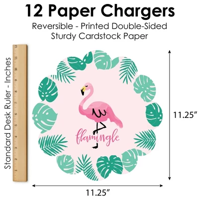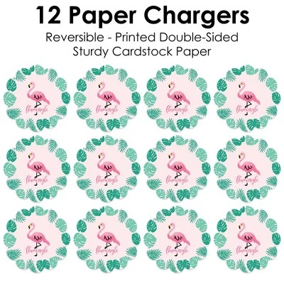 Pink Flamingo Paper Chargers INCLUDES set of 12 reversible round table decorations. Create an exciting look at your Baby Shower or Birthday Party when you use paper chargers to elevate your table setting and accent your dinnerware. Tablescape Accent: Pink Flamingo chargers will add a festive flare to your tablescape. Whether it’s a large feast gathering or a close-knit gathering with the family, paper chargers will add a splash of color and are a great alternative to paper doilies. Easy Decor: Dress up your table with layers! Add a plate to the center of paper chargers. Tropical Summer Themed paper charger is an easy solution for your table setting decor and perfect for complementing your tableware. The scallop border can be flared up for an elevated look and the backside can be used for an alternate look. High-Quality Supply: Pink Flamingo Paper Chargers are professionally printed double-sided on sturdy cardstock paper with a photo-like shine. Paper chargers measure 11.25” in diameter and are the perfect final touch to complete your Baby Shower or Birthday Party. Made In The USA: Pink Flamingo Paper Chargers are designed and manufactured at our Wisconsin facility using materials that are Made in the USA.