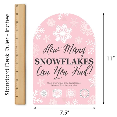 Pink Winter Wonderland Hide and Find Game INCLUDES 1 sign with a built-in stand and 48 hexagon game pieces that you can hide for an exhilarating scavenger hunt at your Winter Birthday Party and Baby Shower. Easy Assembly: Pink Winter Wonderland game sign comes with built-in stand and requires some easy DIY assembly. To display your sign, fold the sides of the stand towards the center. Then, fold down the support piece of the stand until it rests in the notches. How To Play: Hide and find game sign shows the design of each hexagon piece, so display on a table where everyone can see. Then, find creative places to hide the game pieces around your venue. Finally, send your guests to hunt for the pieces. Whoever finds the most pieces wins! For a twist, divide the guests into teams and assign each team a piece to hunt for. High-Quality Supply: Pink & Silver Snowflake Hide and Find Game is professionally printed double-sided on heavy-duty cardstock paper with a photo-like shine. Sign measures 7.5β wide by 11β tall and hexagon pieces measure 2.25β wide by 2.25β tall. Made In The USA: Pink Winter Wonderland Hide and Find Game is designed and manufactured at our Wisconsin facility using materials that are Made in the USA. Pink Winter Wonderland Hide and Find Game uses a No-Mess Glitter Print: Our game is designed with a printed image of glitter, eliminating glitter flake while maximizing bling effect!