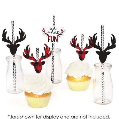 Prancing Plaid Straw Decor INCLUDES 24 buffalo plaid paper cut outs, 24 coordinating paper straws & clear stickers for easy assembly. Reindeer flannel DIY party supplies are perfect for a Holiday or Christmas party. Prancing Plaid Straw Decor party kit SIZE 8 plaid reindeers 2.75″ wide x 2.75″ tall; 8 black reindeers 2.75″ wide x 2.75″ tall; 8 oh what fun 2.75″ wide x 2.75″ tall; and 24 chevron striped paper straws 7.75″ tall. EASY PARTY DECORATIONS: Prancing Plaid straw decor will add a touch of festivity to your Holiday or Christmas party tables. Buffalo plaid straw decor will also look great at your beverage bar. Use these adorable reindeer plaid party accessories as straws or swizzle sticks. The paper straws can also be cut in half and used as cupcake picks once the shaped cut out is attached. PREMIUM PARTY SUPPLIES: Prancing Plaid paper cut out straw decorations are professionally printed on heavy-duty cardstock paper with a photo-like shine. They are individually inspected and carefully packaged by hand, along with coordinating paper straws. Prancing Plaid Straw Decor will require some easy assembly. Simply adhere the shaped cut outs to the straws using the included clear stickers. Get creative with your DIY Holiday or Christmas party decoration ideas! Please Note: Mason Jars shown for display purposes and are not included.