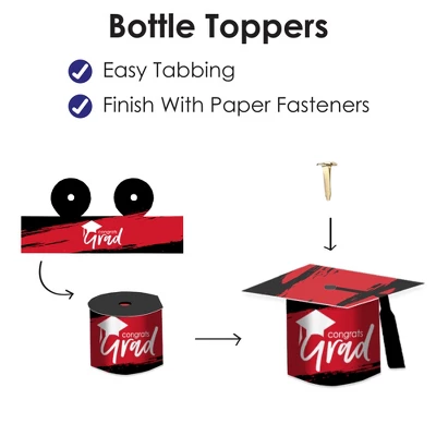 - Set of 20 Grad Cap DIY Bottle Toppers with Fasteners Included