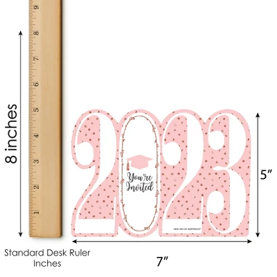 Rose Gold Grad Fill-In the Blank Invitation Set INCLUDES 12, 2023 invitations and 12 premium white envelopes. Rose Gold Grad – 2023 fill-in invitations are perfect for any event. The rose gold theme is great for a graduation party. 2023 graduation party invitations SIZE 7 inches by 5 inches. The included envelopes measure 5 inches by 7 inches. The back of each Rose Gold Grad – 2023 graduation party invitation has space to add your party details: For: Date: Time: Place: Given By: RSVP: PREMIUM PARTY INVITATIONS: 2023 graduation party invitations are professionally printed on heavy-duty card stock paper with a photo-like shine. They are individually inspected, then carefully packaged with our exclusive squiggle flap envelopes, making this Rose Gold Grad – 2023 stationary set a must-have for any graduation party. MADE IN THE USA: Rose Gold Grad – 2023 – Graduation Party Invitations are designed and manufactured at our Wisconsin facility using materials that are Made in the USA. Rose Gold Grad Fill-In Invitations use a No-Mess Glitter Print: Our invitations are designed with a printed image of glitter, eliminating glitter flake while maximizing bling effect!