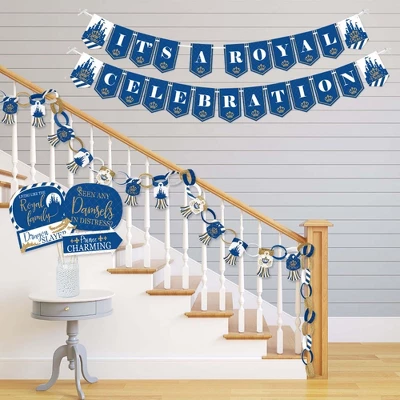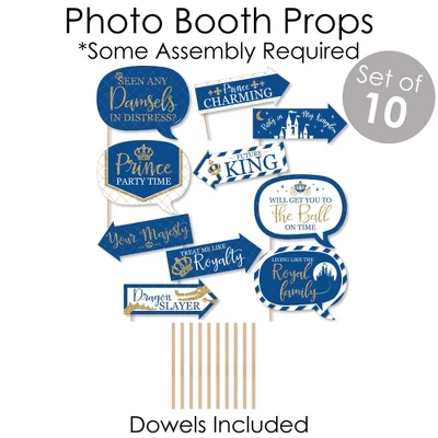 Doterrific Bundle INCLUDES: Bunting Banner “It’s A Royal Celebration”, Paper Chains Garland 21 Feet, and Funny Photo Booth Props Kit 10-Piece. Style any baby shower or birthday party with coordinating Royal Prince Charming-themed party supplies. Use Royal Prince Charming Doterrific Bundle to create an impressive photo booth backdrop. Please Note: Assembly is Required. BUNTING BANNER: Greet your party guests with a Royal Prince Charming bunting banner. Assemble the themed pennant flags with included ribbon and hang with the included wall mount adhesives. Each pennant measures 5.5″ wide x 8.5″ high. Satin ribbon measures 24 feet long and 3/8″ wide. Hang at the entrance of your event, at the gift table, or display as a background for photo ops. PAPER CHAINS: Royal Prince Charming paper chains decoration kit will arrive flat and is easy enough for the whole family to assemble. The heavy-duty paper tassels give our paper chains a unique flair. Dress up all areas of your prince charming party with paper chains. For decorating fun, wrap paper chains down a staircase railing or use as a photo backdrop. PHOTO PROPS: 10-Piece Funny Royal Prince Charming photo booth props include 4 speech bubble shapes (10.25″ wide x 8.25″ tall), 6 arrow shapes (10.5″ wide x 4.5 inches) tall, 10 dowel sticks (12″ tall). For easy assembly, adhesive dots and stickers are included. Use photo props and dowels as centerpieces or scatter props throughout your event space for even more party fun. MADE IN THE USA: Royal Prince Charming Doterrific Bundle is designed and manufactured at our Wisconsin facility using materials that are Made in the USA. Professionally printed on sturdy cardstock paper with a photo-like shine. Royal Prince Charming Doterrific Bundle Kit use a No-Mess Glitter Print: Our DIY party decorations are designed with a printed image of glitter, eliminating glitter flake while maximizing bling effect!