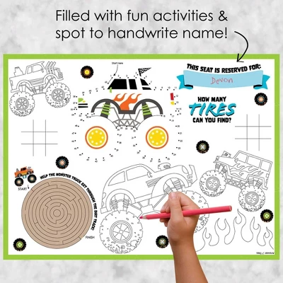 Activity Placemats INCLUDE 16 Smash and Crash – Monster Truck-themed paper activity placemats for kids. EASY CLEAN UP: Smash and Crash – Monster Truck paper placemats SIZE 15.5 inches wide x 11.5 high. Made of sturdy cardstock paper, these disposable placemats will make it easy to clean up after the party is over. Party placemats are perfect for at-home dining tables and easy decoration to bring to your favorite restaurant. FUN PARTY ENTERTAINMENT: Activity Placemats are a fun and easy way to keep kids entertained! Each placemat coloring sheet includes matching activities and games. Perfect kids’ activity and party decoration for a Smash and Crash – Monster Truck birthday party. PAPER PLACEMATS: Smash and Crash – Monster Truck placemats are professionally printed double-sided on sturdy cardstock paper. Front side features our Smash and Crash – Monster Truck theme design with a photo-like shine. Flip the placemat over for kid friendly activities. Each placemat is individually inspected and carefully packaged by hand. MADE IN THE USA: Smash and Crash – Monster Truck paper coloring sheets and activity placemats are designed and manufactured at our Wisconsin facility using materials that are Made in the USA.