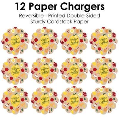 - Professionally Printed Double-Sided On Sturdy Cardstock Paper. Charger Design Reads: “Happy Sukkot”