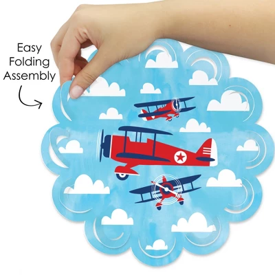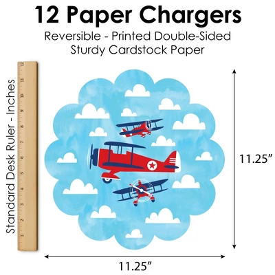 Taking Flight Airplane Paper Chargers INCLUDES set of 12 reversible round table decorations. Create an exciting look at your Birthday Party or Baby Shower when you use paper chargers to elevate your table setting and accent your dinnerware. Tablescape Accent: Taking Flight Airplane chargers will add a festive flare to your tablescape. Whether it’s a large feast gathering or a close-knit gathering with the family, paper chargers will add a splash of color and are a great alternative to paper doilies. Easy Decor: Dress up your table with layers! Add a plate to the center of paper chargers. Vintage Plane Themed paper charger is an easy solution for your table setting decor and perfect for complementing your tableware. The scallop border can be flared up for an elevated look and the backside can be used for an alternate look. High-Quality Supply: Taking Flight Airplane Paper Chargers are professionally printed double-sided on sturdy cardstock paper with a photo-like shine. Paper chargers measure 11.25” in diameter and are the perfect final touch to complete your Birthday Party or Baby Shower. Made In The USA: Taking Flight Airplane Paper Chargers are designed and manufactured at our Wisconsin facility using materials that are Made in the USA.