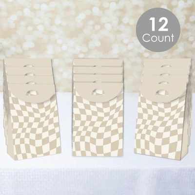 Tan Checkered Party Goodie Bag INCLUDES 12 gift favor bags that are perfect for a Bridal Shower, Wedding Shower or Birthday Party. Each bag SIZE measures 4.75β length x 2.5β wide x 7β tall. Party Goodie Bags are excellent for small gifts, treats, and other party favors. FANTASTIC FAVORS: Gather all the goodies to place inside these fun gift bags! Fill the party goodie bags with an assortment of gifts like bite-sized candies, small toys, trinkets, and thank you party favors! Delight your guests when you surprise them with these Checker swag bags. EASY ASSEMBLY: Party goodie bags will arrive flat. Each favor bag includes creased lines and numbered tabs for easy folding. To close each bag, fold over the top flap and secure it by inserting the tab inside the slit. Packaging will also include assembly instructions. HIGH-QUALITY SUPPLY: Tan and White Party Goodie Bags are professionally printed double-sided on heavy-duty cardstock paper with a photo-like shine. They are individually inspected and then carefully packaged by hand. MADE IN THE USA: Tan Checkered Party Goodie Bags are designed and manufactured at our Wisconsin facility using materials that are Made in the USA.