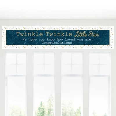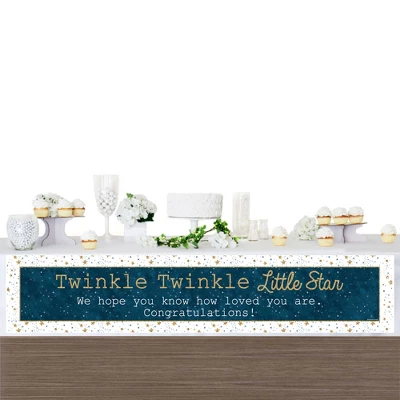 Twinkle Twinkle Little Star Baby Shower Banner is an impressive baby shower decoration for your blue and gold party. SIZE: Twinkle Twinkle Little Star baby shower banner measures 1 foot by 5 feet. BABY SHOWER DECORATIONS: A Twinkle Twinkle Little Star Baby Shower Banner is an easy way to decorate for your party and bring your starry theme to life. Hang at the entrance of your baby shower, over the food table or candy buffet, at the gift table, or behind the dining table. Twinkle Twinkle Little Star Baby Shower Banners are also great when displayed outdoors to welcome all of your baby shower party guests as they arrive. PREMIUM BABY SHOWER SUPPLIES: Twinkle Twinkle Little Star Baby Shower Banner is professionally printed on premium-grade satin paper with a photo-like shine. Each banner is individually inspected then carefully packaged by hand and rolled into a protective sleeve. All baby shower banners INCLUDE non-marking adhesive wall mounts for easy display. MADE IN THE USA: Twinkle Twinkle Little Star – Baby Shower Decorations Party Banner is designed and manufactured at our Wisconsin facility using materials that are Made in the USA. Twinkle Twinkle Little Star Baby Shower Banners use a No-Mess Glitter Print: Our banners are designed with a printed image of glitter, eliminating glitter flake while maximizing bling effect!