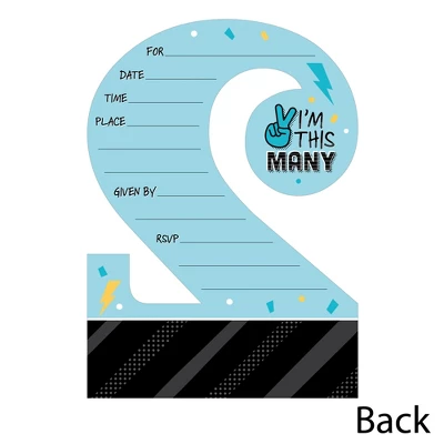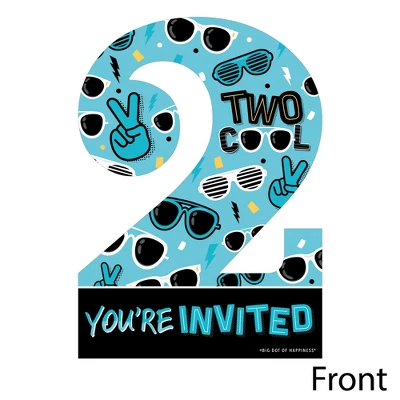 Big Dot Of Happiness Two Cool – Boy – Shaped Fill-In Invitations – Blue 2nd Birthday Party Invitation Cards With Envelopes – Set Of 12