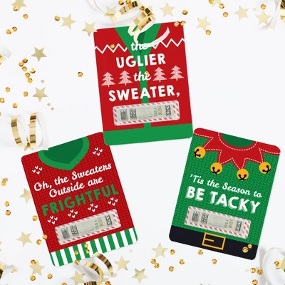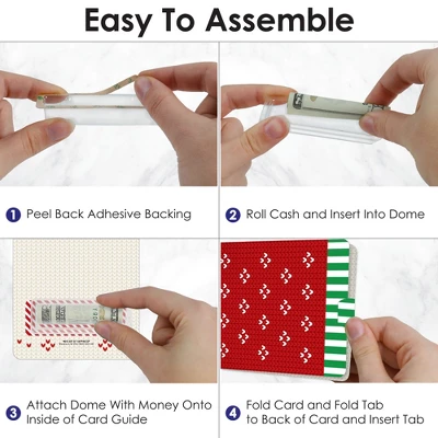 Ugly Sweater Funny Money Cards includes a set of 6 assorted money greeting cards and 6 plastic domes with adhesive backings. Funny money cards come with hilarious phrases that will make your recipient laugh and are perfect for a Holiday and Christmas Party gift. Cheerful Gift: Delight your recipient with some cold, hard cash! X-Mas funny money card comes with space to write a personal message, making this a fun yet heartwarming way to show your loved one how much you care. Ugly Sweater cards measure 4 inches wide x 5 inches tall when folded and 11 inches tall when open. Plastic domes measure 3.25 inches Wide x 1.25 inches tall. Easy Assembly: To assemble your sweatshirts cash holder card, peel back the adhesive backing on the plastic dome. Roll your cash and insert it into the dome. Next, attach the dome with money onto the inside of the card, placing it on the rectangular guide. Then, finish by folding the card and folding the bottom tab to the back of the card and inserting it into the slit to secure it shut. High-Quality Supply: Ugly Sweater DIY money holders are professionally printed double-sided on heavy-duty cardstock paper. Cards come with a photo-like shine on the outside. The inside will be matte, making it easy to handwrite your personal message. The clear plastic domes come in a lip balm pouch shape and are easy to use with a peel-and-stick adhesive backing. Assembled In The USA: Ugly Sweater Funny Money Cards are designed and manufactured at our Wisconsin facility using materials that are Made in the USA – Plastic Domes Made in China.