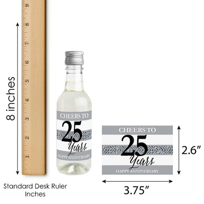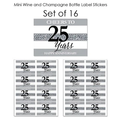 We Still Do – 25th Wedding Anniversary Mini Wine and Champagne Bottle Labels INCLUDES Set of 16 twenty-fifth anniversary single-serve bottle sticker labels in the We Still Do – 25th Wedding Anniversary theme, perfect for an anniversary party favor gift. Mini wine and champagne bottle label each SIZE 3.75 inches wide x 2.6 inches tall to fit small, single-serve bottles. EASY TO USE: Prepare your beverage bottles by ensuring they are room temperature. Removing the original bottle label is not necessary. Carefully peel one adhesive We Still Do – 25th Wedding Anniversary Mini Wine Bottle Label from the backing and adhere to a bottle, starting at the left edge and rolling to the opposite edge. Press down to smooth. HIGH QUALITY PARTY FAVORS: We Still Do – 25th Wedding Anniversary mini wine and champagne bottle labels are professionally printed on a sticker paper with a glossy coating. They are waterproof and can be used on bottles that will be chilled, just be sure to apply prior to chilling. Add them single-serve bottles at each place setting for an impressive, coordinated anniversary party favor gift. UNIQUE GIFT IDEA: We Still Do – 25th Wedding Anniversary Mini Wine Bottle Labels also make a great gift idea. Add Mini Wine and Champagne Bottle Label Stickers to a variety of single-serve wine and spirits bottles for a special gift or party game winner prize. Wine bottle labels will easily give your anniversary party a personal touch! MADE IN THE USA: We Still Do – 25th Wedding Anniversary Mini Wine and Champagne Bottle Label Stickers are made at our Wisconsin facility using materials that are Made in the USA. Please Note: Mini bottles in image are not included. Mini Wine and Champagne Bottle Labels No-Mess Glitter Print: Our beverage labels are designed with a printed image of glitter, eliminating glitter flake while maximizing bling effect!