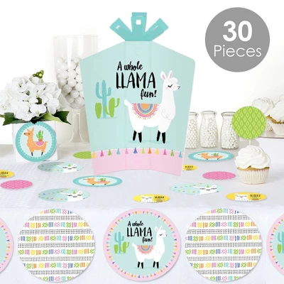Whole Llama Fun Terrific Table Centerpiece Kit INCLUDES 27 paper confetti and 3 fold and flare centerpieces that will look amazing at your Birthday Party or Baby Shower. Make a statement at your celebration with this easy DIY table kit! CIRCLE CONFETTI includes 27 cut-out circle shapes in three different sizes – 12 small circles size 2.75 in, 9 medium circles size 4.25 in, and 6 large circles size 5.5 in. Scatter the Llama Fiesta themed confetti across your dessert or buffet table for an impressive addition to your decorations. FOLD AND FLARE CENTERPIECES includes 3 table decorations measure 5 inches wide (front/back) x 3 inches wide (sides) x 10.5 inches tall. These paper table decors require easy folding to flare out each centerpiece for your desired look. Simply, use a flat surface to fold along the scored creases to stand the centerpiece upright and be able to balance on its own. Both Fold and Flare Centerpieces & Confetti Are Professionally Printed Double-Sided on Sturdy Cardstock Paper MADE IN THE USA: Whole Llama Fun Terrific Table Centerpiece Kit is designed and manufactured at our Wisconsin facility using materials that are Made in the USA.
