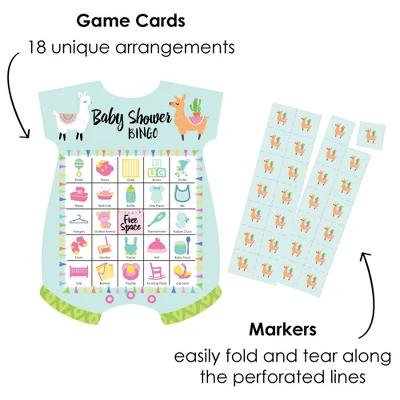 - Set Includes – 18 Baby Bodysuit-Shaped Game Cards, 18 Perforated Marker Sheets, 1 Perforated Call Sheet, and Game Instructions