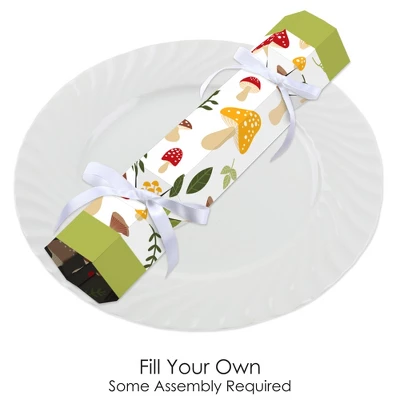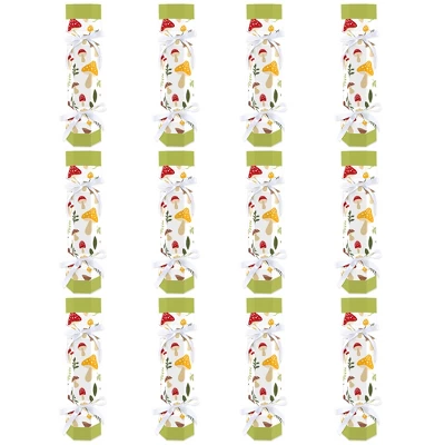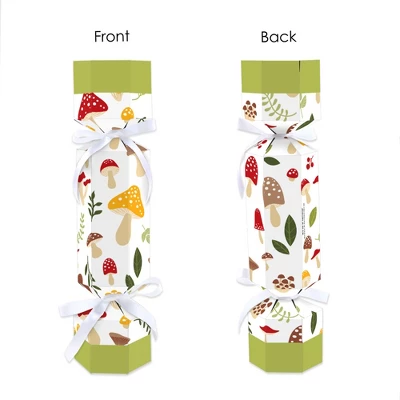 Big Dot of Happiness Wild Mushrooms Cracker Boxes includes 12 DIY party favor boxes and coordinating satin ribbon. No-snap crackers are a unique favor box that will make your Red Toadstool Party unforgettable! Decorative Table Favors: Non-snap Forest Mushroom party crackers are a playful and whimsical addition to your celebration. These fill-your-own decorative boxes are perfect for fun-sized candies, tiny trinkets, and small party favors. Easy Assembly: To assemble, begin by creasing along the scored line to create the hexagonal shape. Tightly tie a ribbon around the bottom diamond cutout section, and then fill your own goodies inside! To close, secure a ribbon around the top section. High-Quality Supply: Wild Mushrooms crackers are professionally printed double-sided on heavy-duty cardstock paper with a photo-like shine. When assembled, Wild Mushrooms party crackers measure 2.25β wide by 9β tall. Cracker favor boxes will arrive flat with some assembly required. Candy not included. Made In The USA: Wild Mushrooms DIY cracker boxes are designed and manufactured at our Wisconsin facility using materials that are Made in the USA.