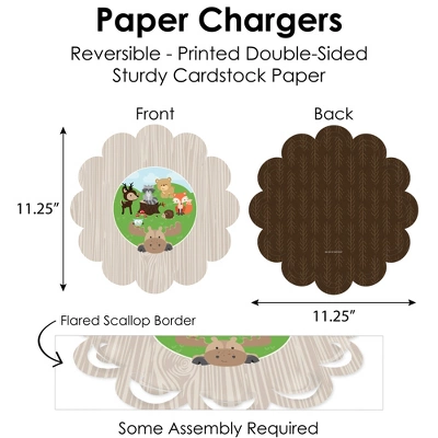 - Paper Chargers: Includes 8 reversible round table decorations β 11.25β in diameter